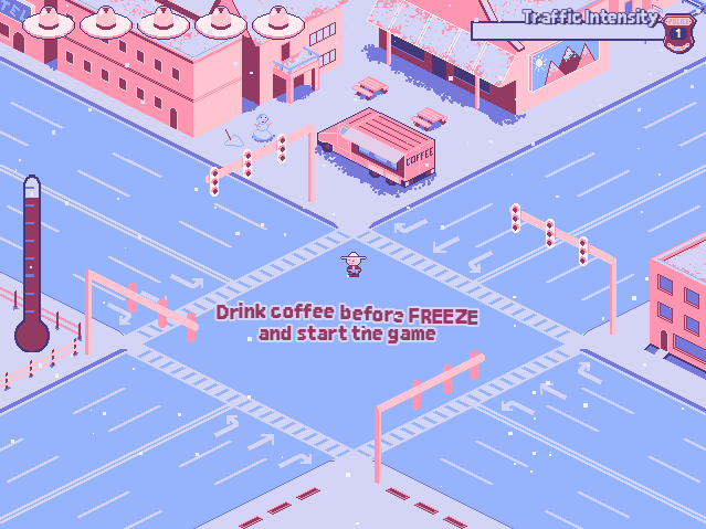 Freeze lane with your whistle and drink coffee to don't freeze. Reach last level to win the game !